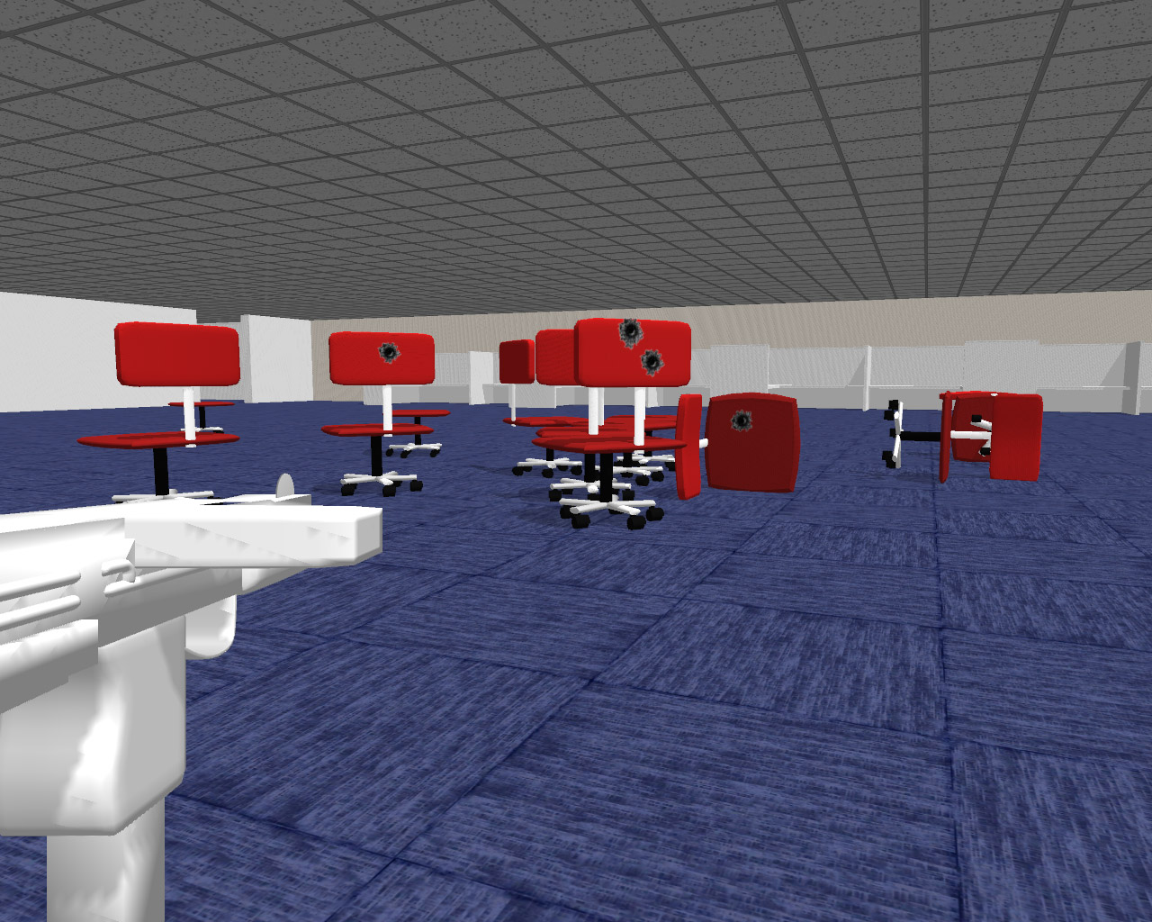 Wheely Chair (working title) is an upcoming first person shooter based entirely in an office chair. In Wheely Chair the main method of movement is from gun recoil. Different weapons offer different movement characteristics to help you zip around those tight office corners or leap over that dangerous gravel path.